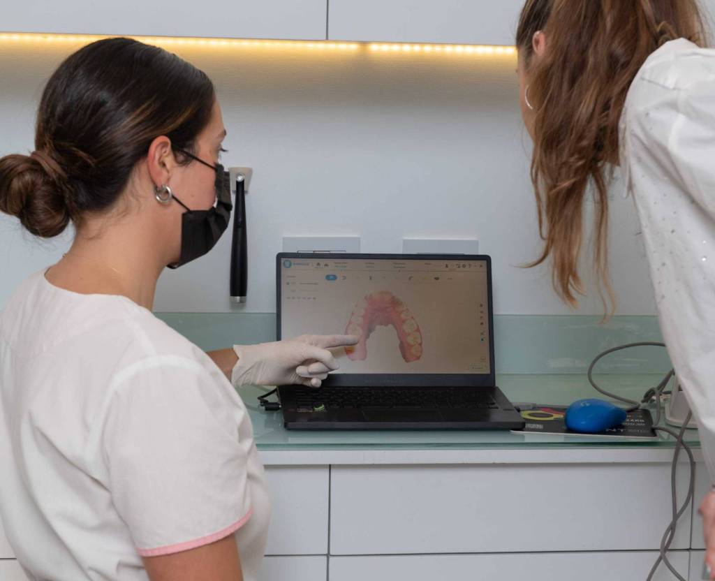 El escáner intraoral es una pequeña cámara que se introduce dentro de la boca captando miles de imágenes en alta definición y las transforma en un modelo digital en 3D de tu boca. Este modelo se puede girar, ampliar y analizar con gran detalle, lo que permite a tu odontólogo planificar tu tratamiento de manera exacta y personalizada.